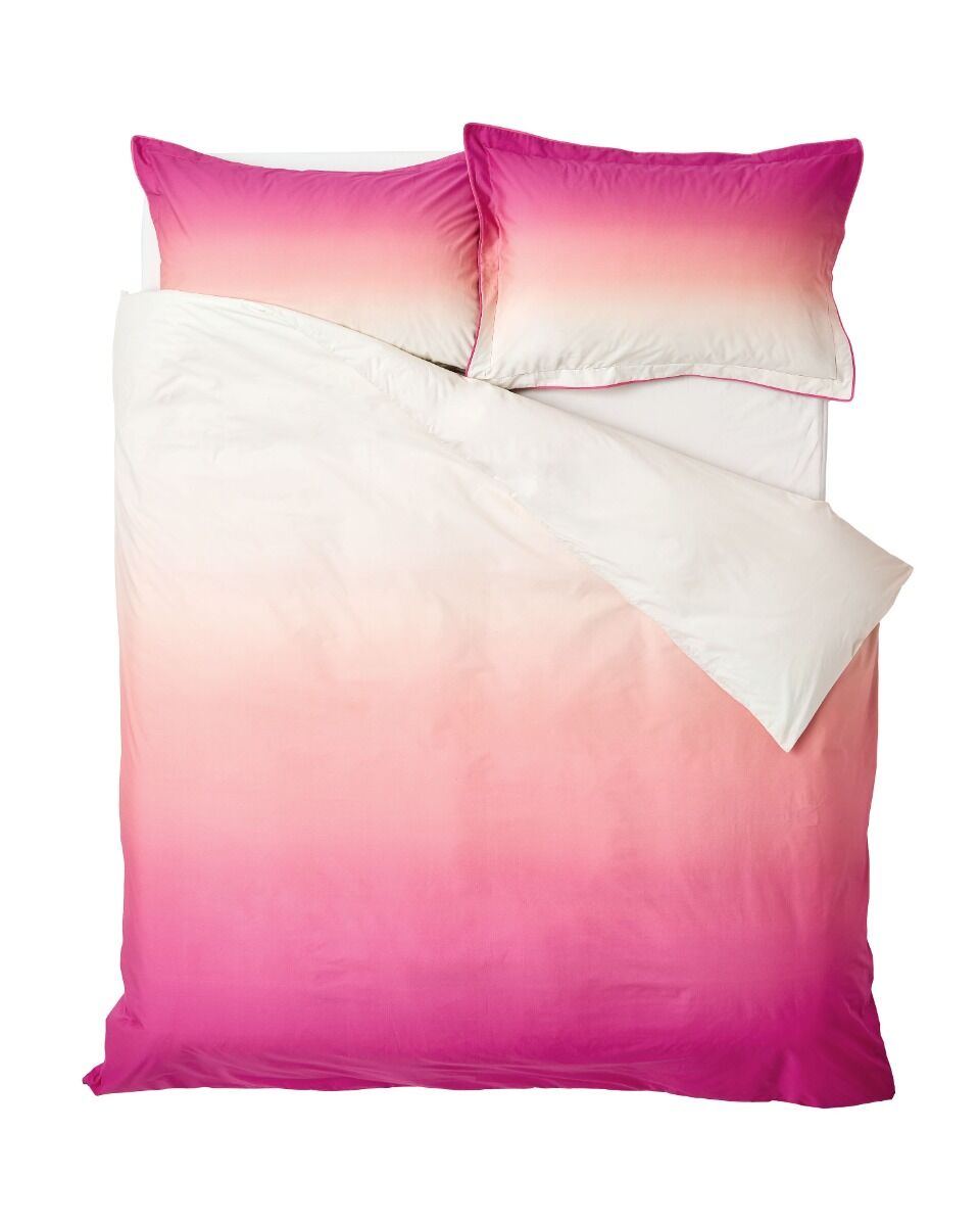 Our statement Savoie ombre has been reimagined in vivid tones of azure shading through to vibrant Pink to white. This stylish bedlinen is printed onto crisp, 200 thread count cotton percale. Produced in Oeko-Tex ® Made in Green factories.