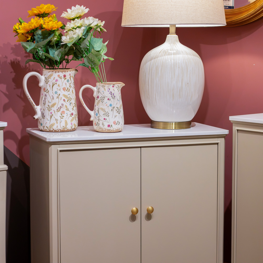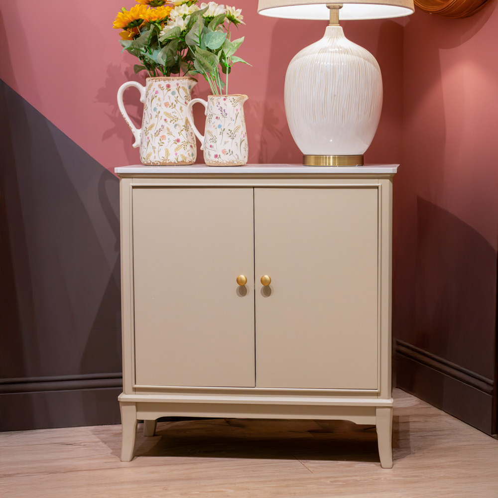The Marlyn 2 door Sideboard is a great way to make your home more stylish and useful at the same time. This sideboard has a sleek stone marble top that looks great in any environment and is built to last.Product