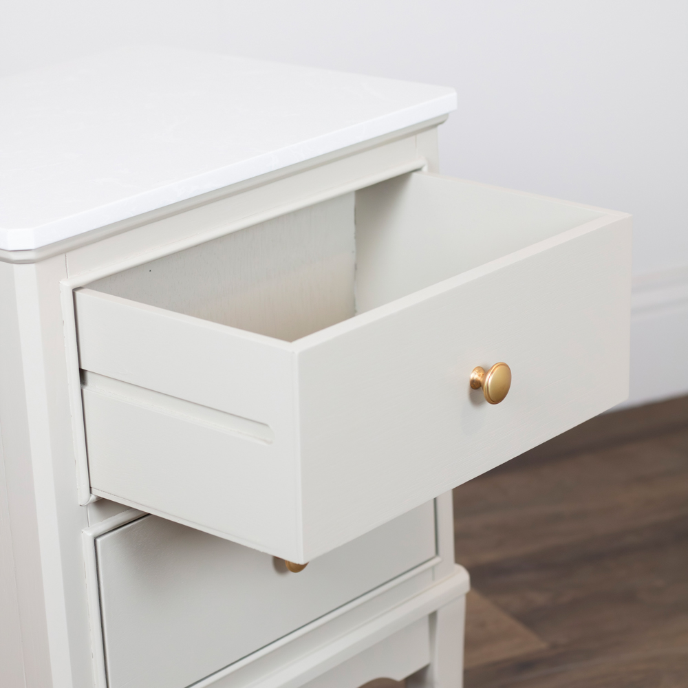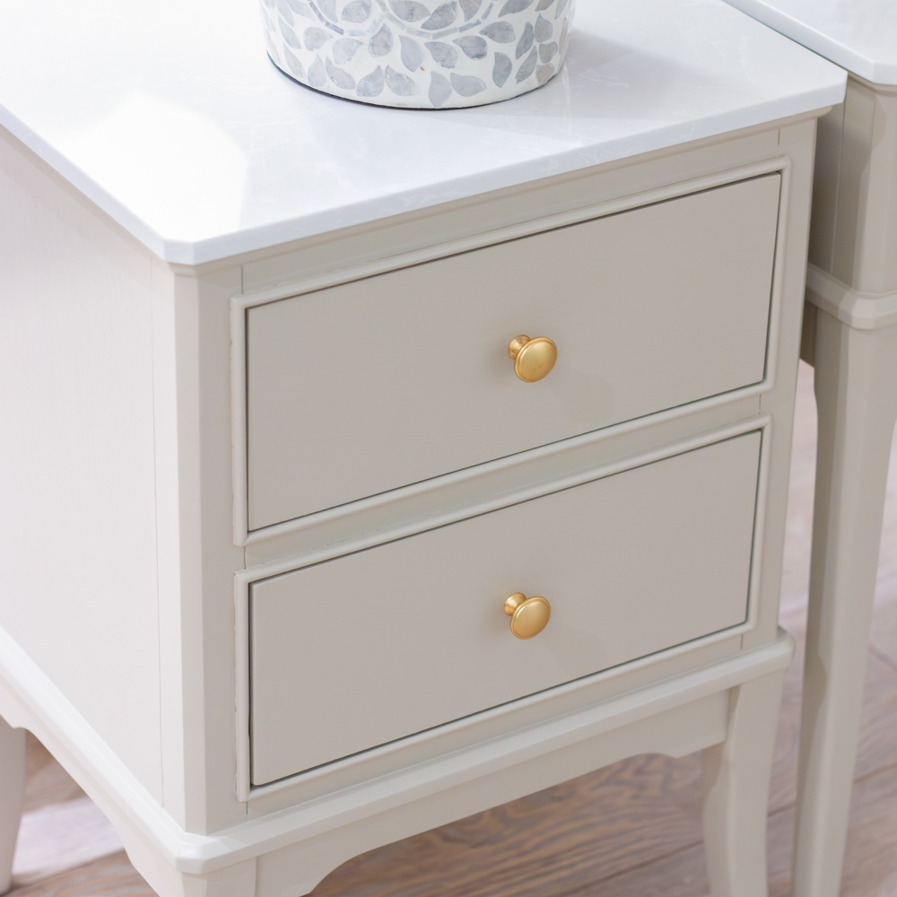 The Marlyn 2 drawer side table/locker is a great way to make your home more stylish and useful at the same time. This 2 drawer side table/locker has a sleek stone marble top that looks great in any bedroom/living environment and is built to last.