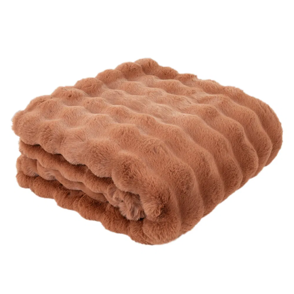 SOFT SQUARETEXTURED THROW IN FAUX RABBIT ORANGE150 X 200