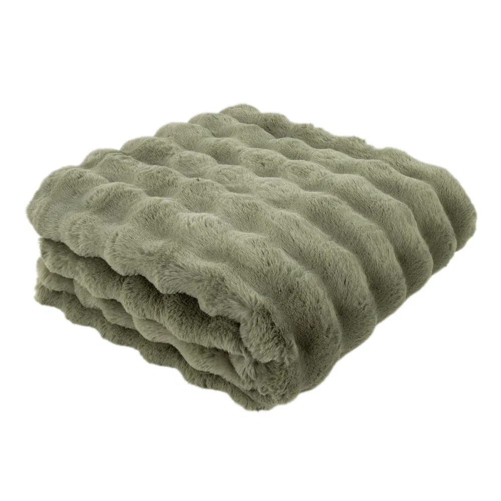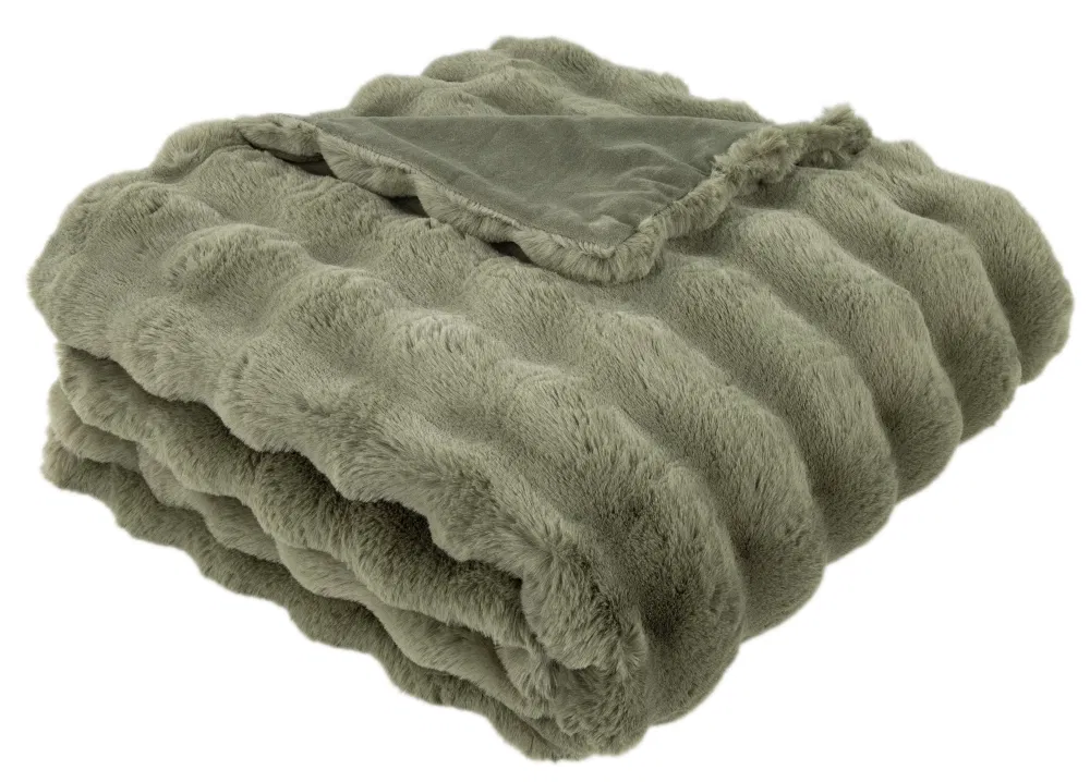 SOFT SQUARETEXTURED THROW IN FAUX RABBIT SAGE 150 X 200