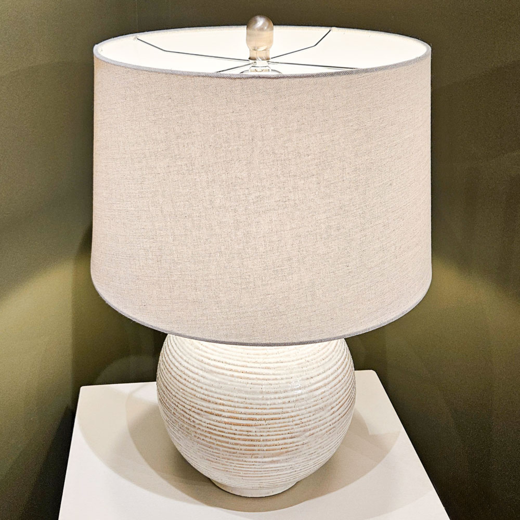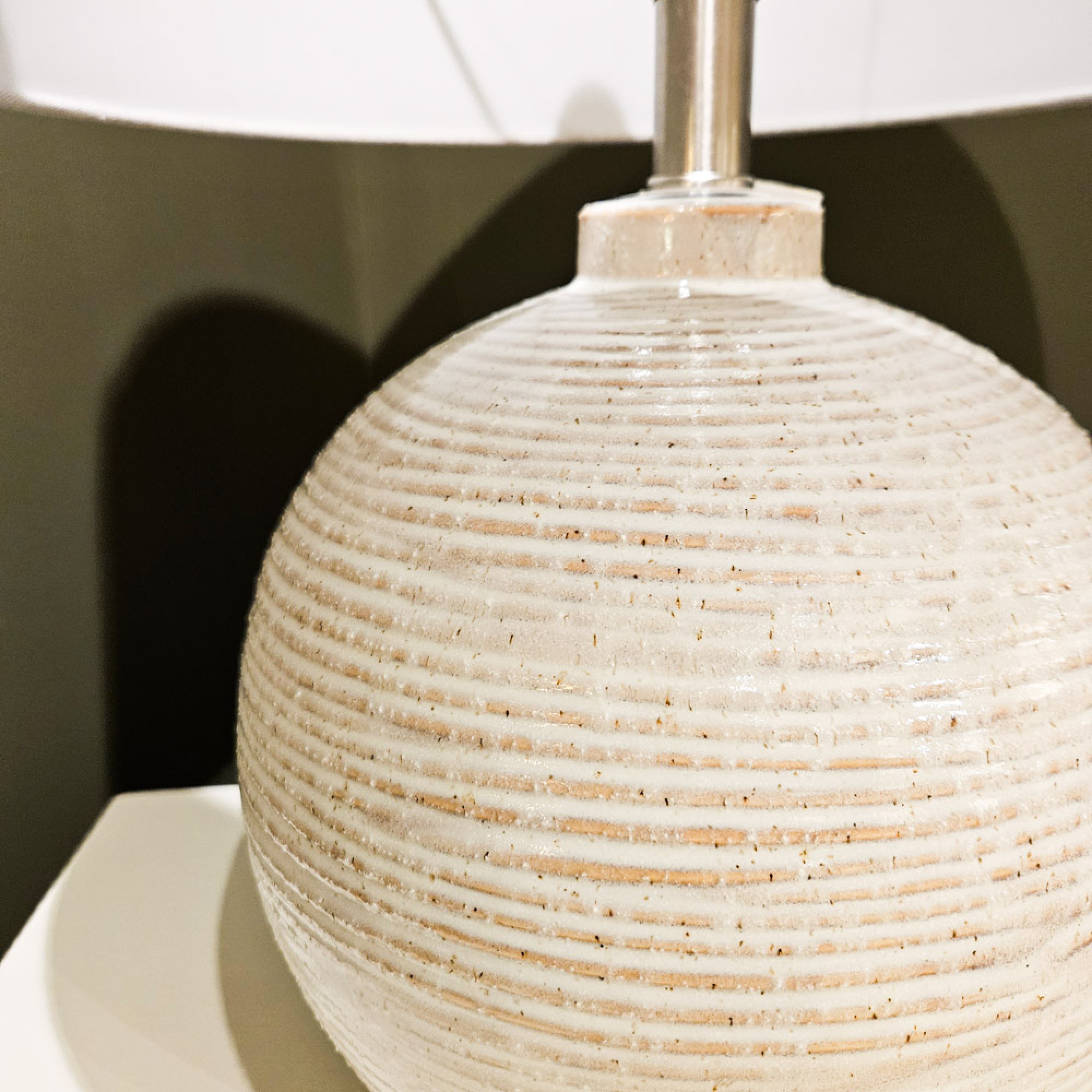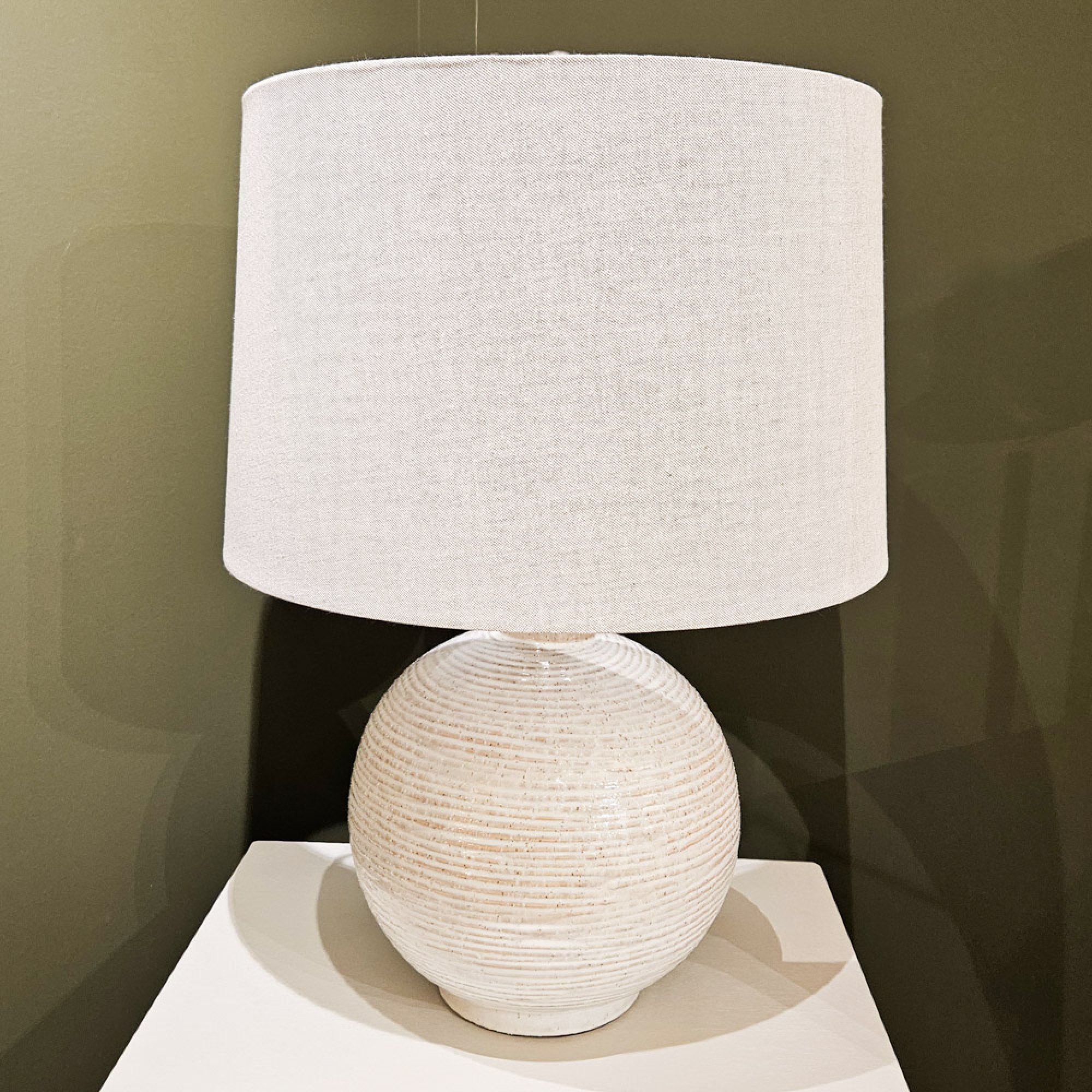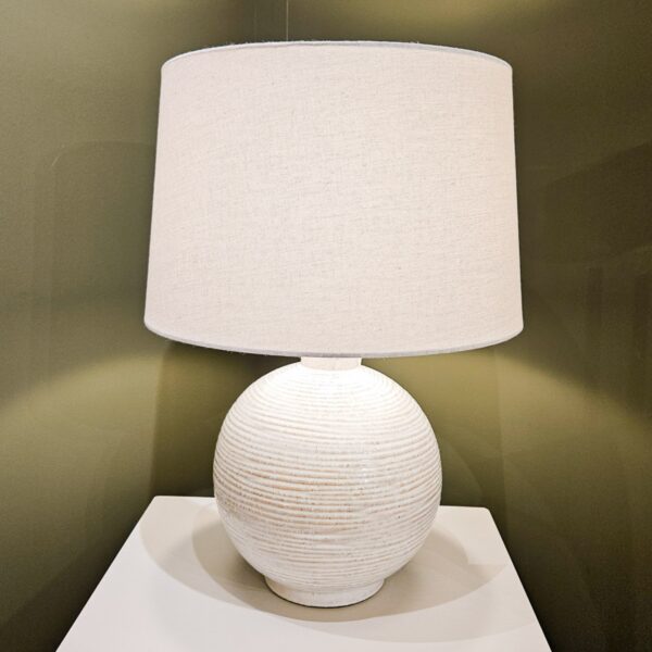 The Sphere Ceramic Table Lamp features a stylish spherical ceramic base that adds a modern and elegant touch to any room. Its contemporary design fits well in various decor styles. The lamp accommodates bulbs up to 60W