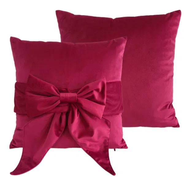 PAUL MONEYPENNY VELV FUSCHIA CUSHION WITH BOW 45 X 45