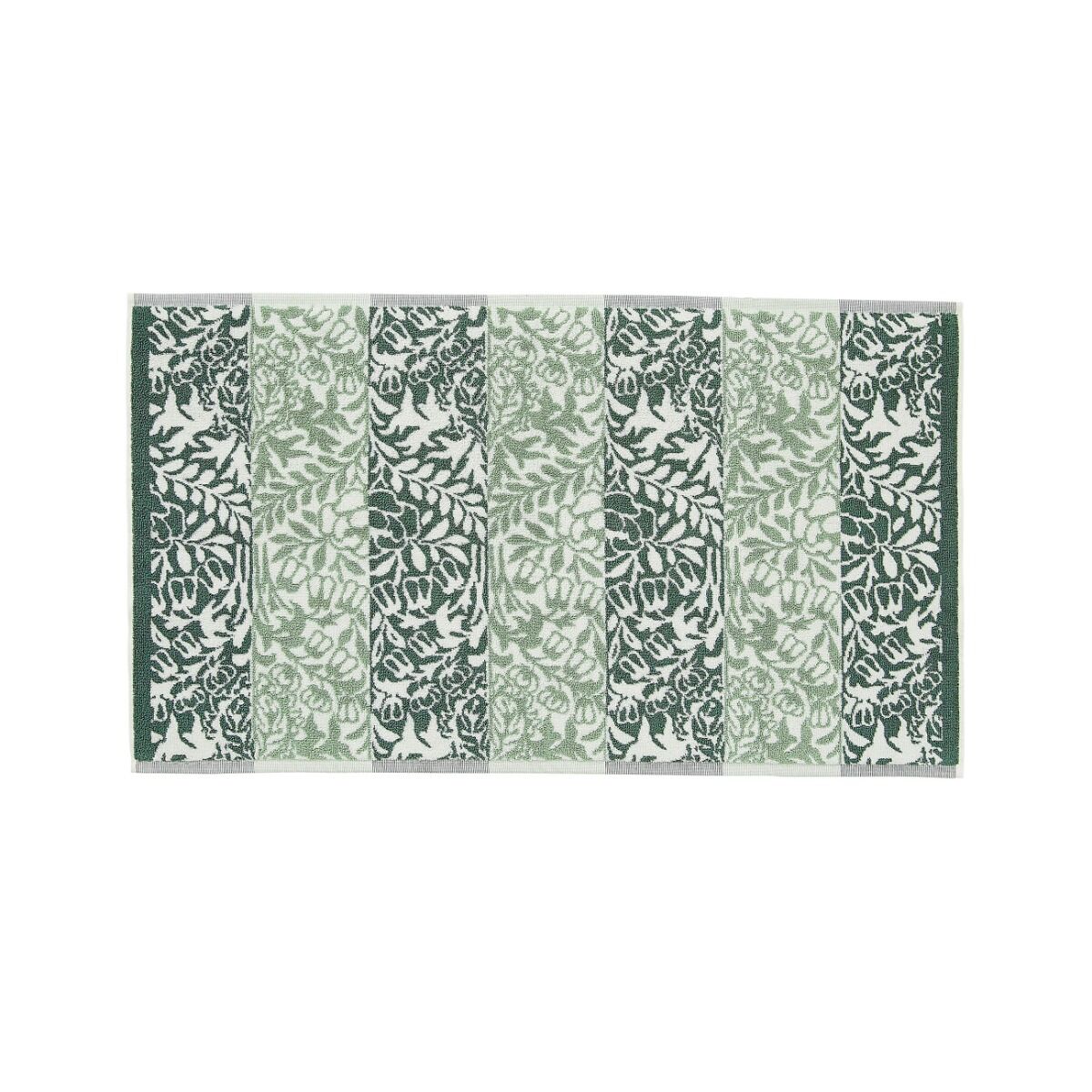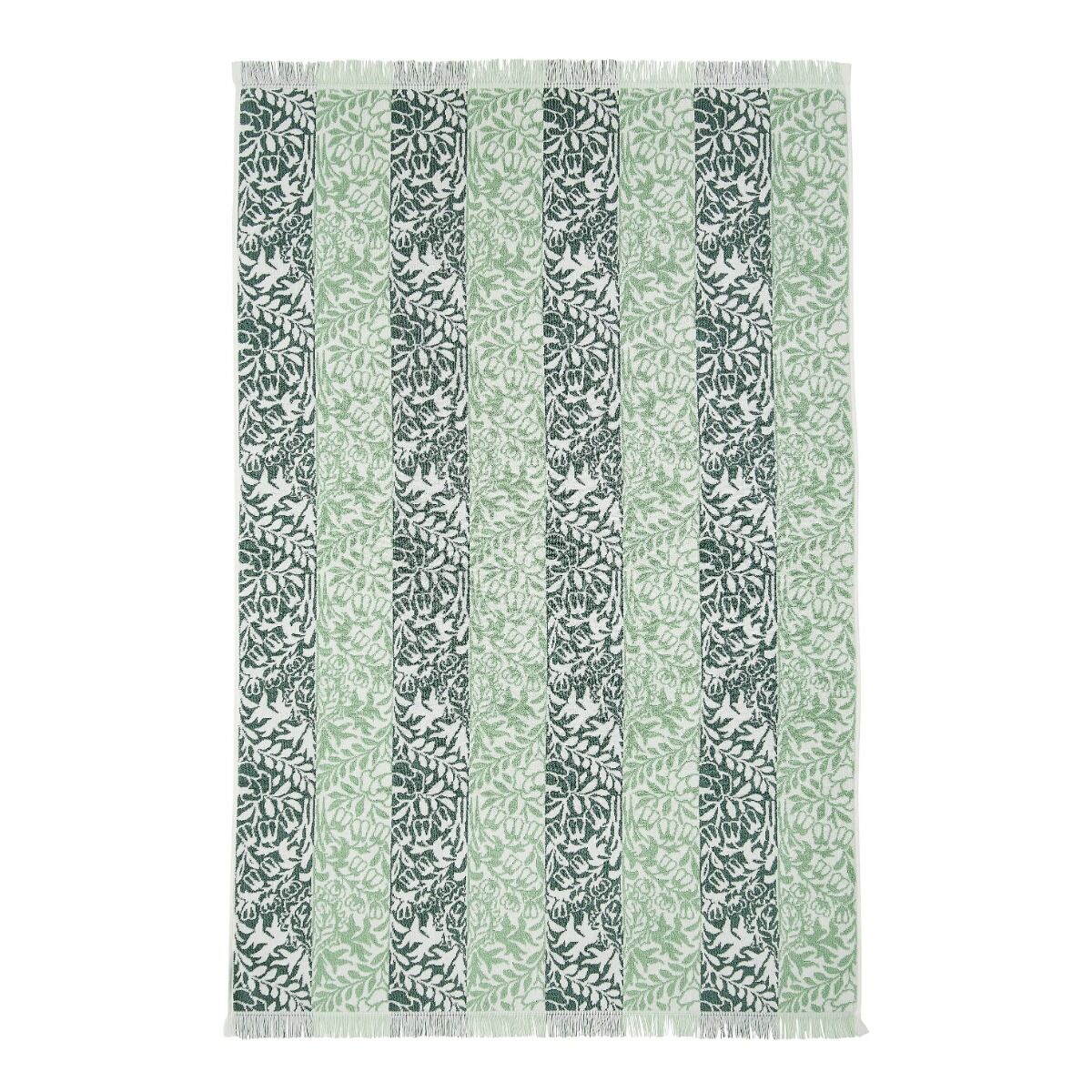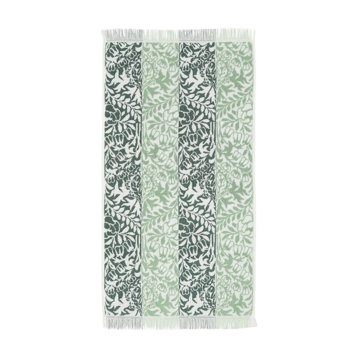 An original drawing created by William Morris for Wilton Carpets and registered in 1876 has been translated into these beautiful 100% cotton towels. The original artwork features a symmetrical application of a rose surrounded by foxgloves. This design, held in the William Morris Gallery archive, was faithfully interpreted into a repeating stripe pattern by the William Morris At Home design team, capturing the authentic essence of the artwork in a unique form, woven in soft sage green yarns and finished with a decorative fringed edging, these towels are perfect for bringing the beauty of nature into your bathroom.